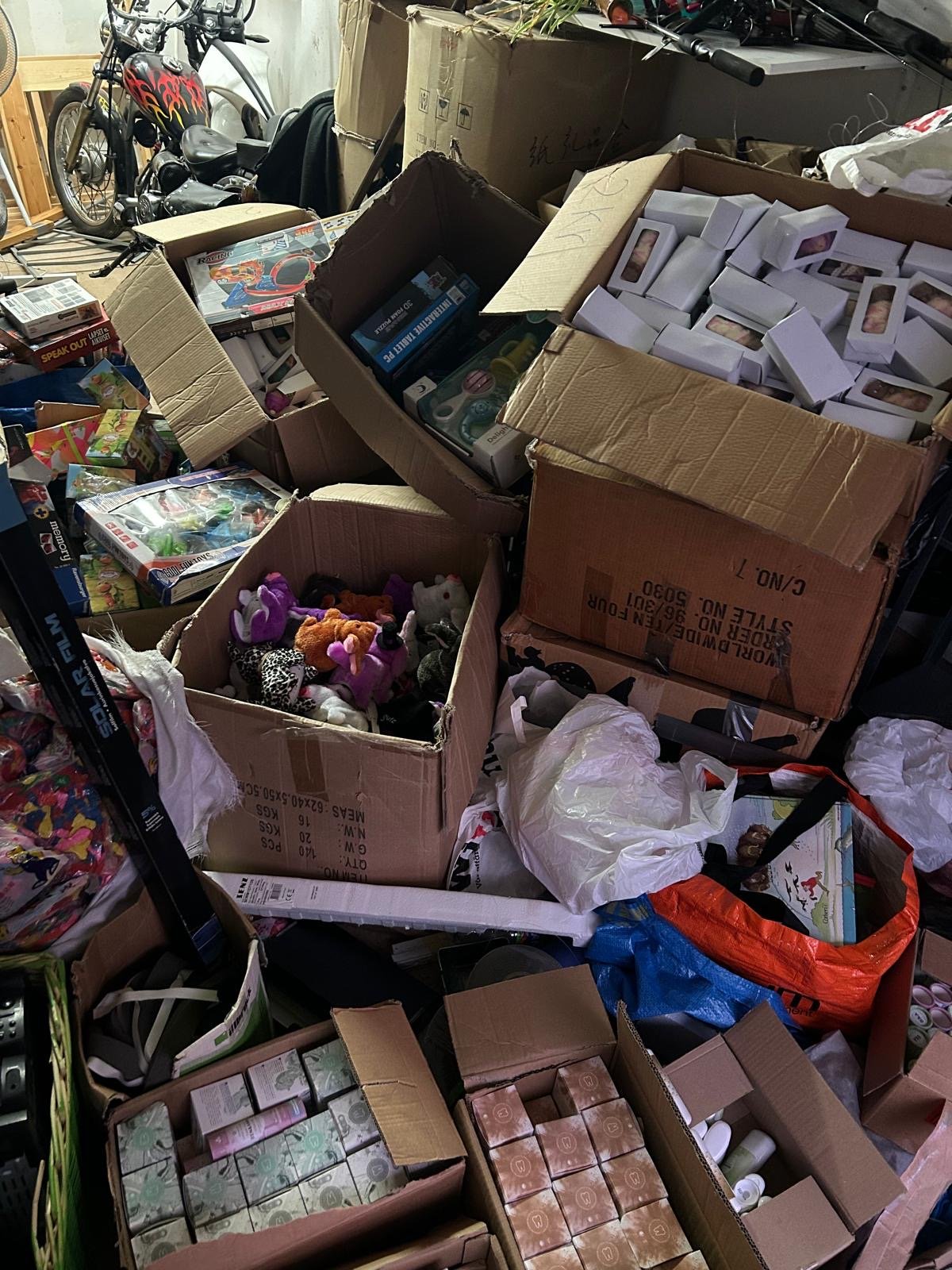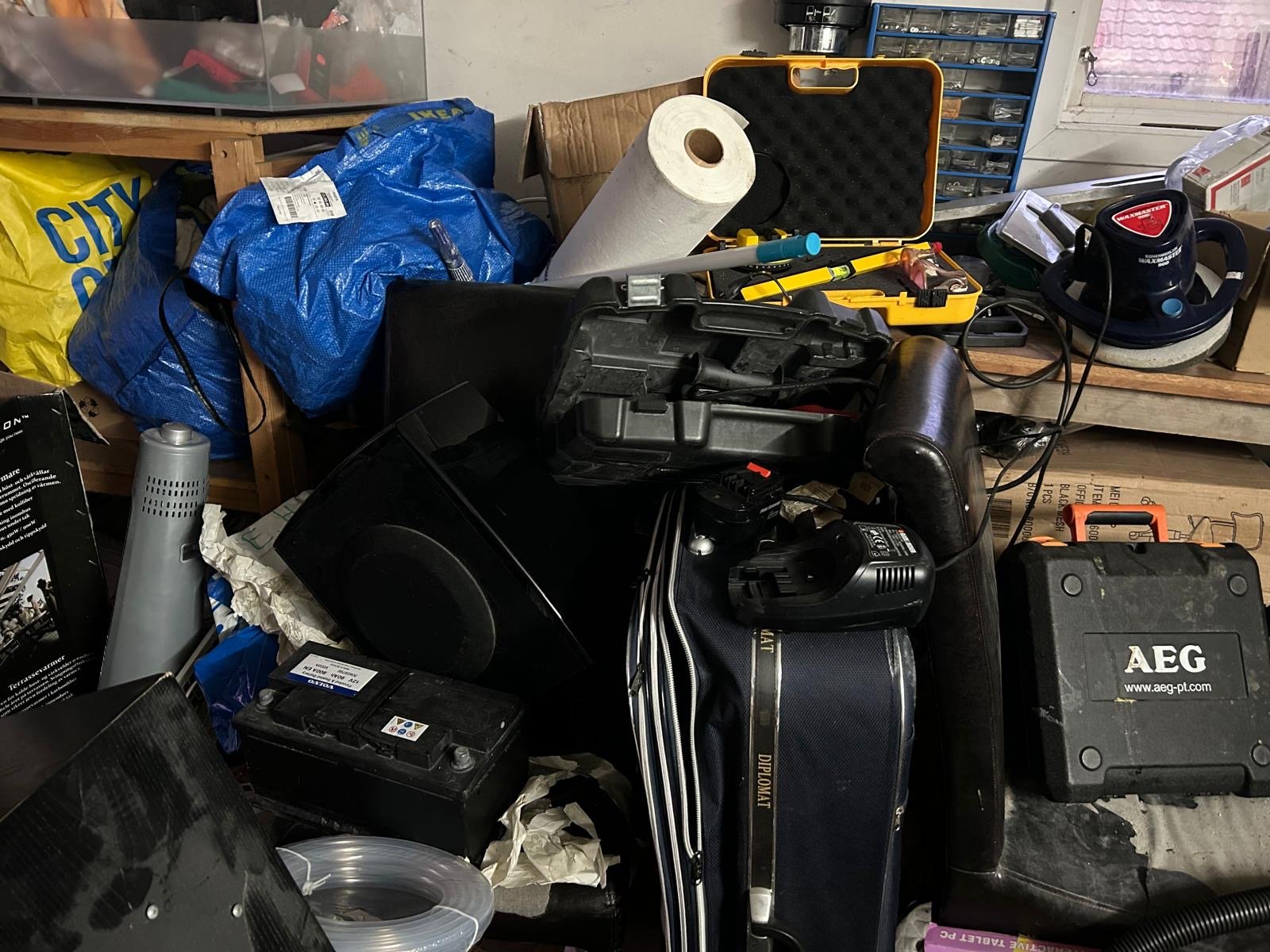 Stort garage med diverge prylar. Allt från nya leksaker till högtalare, elektronik verktyg, fiske grejer, mopeder, vinyler och mycket mera. Se bilderna för mer info.