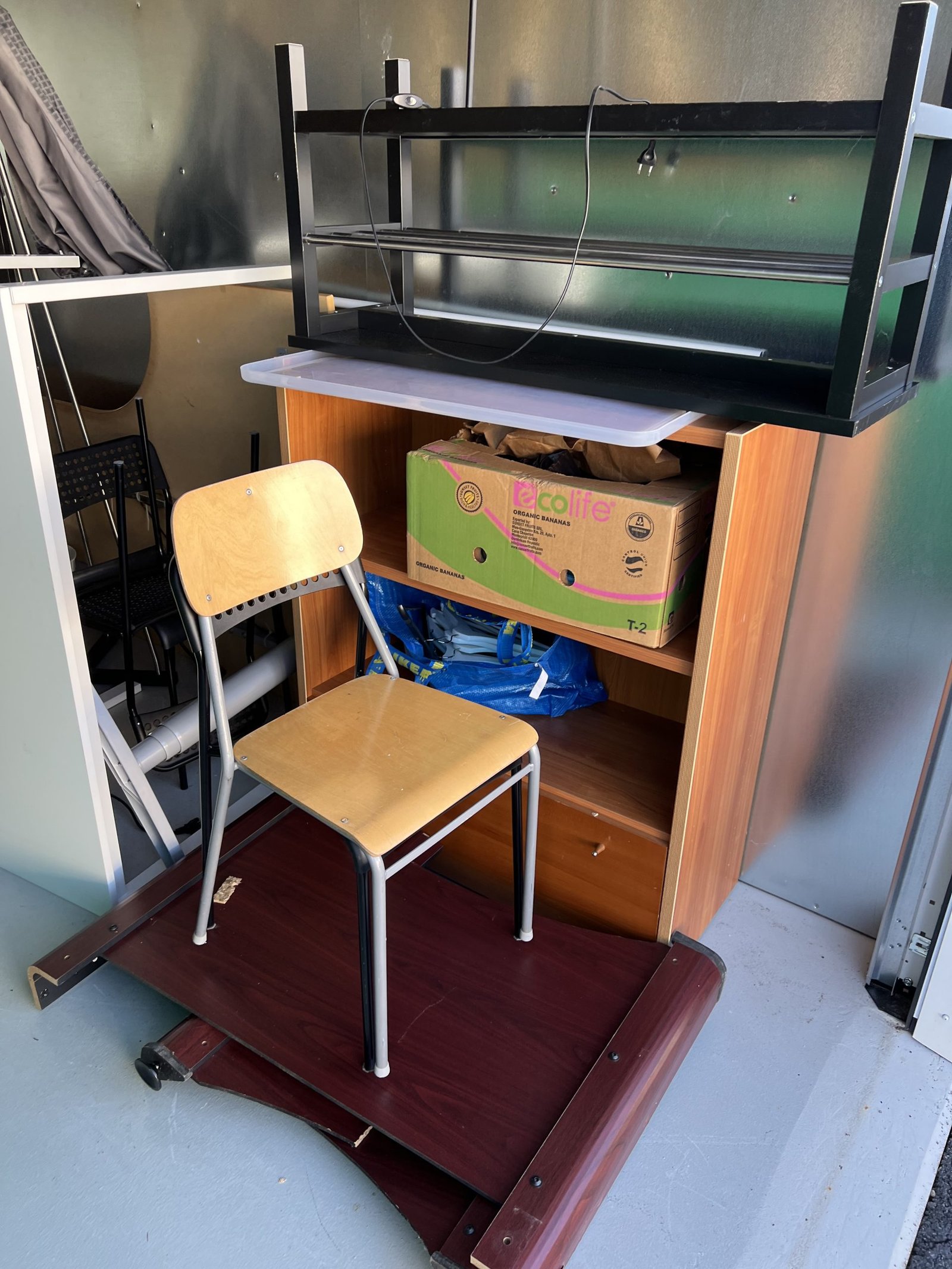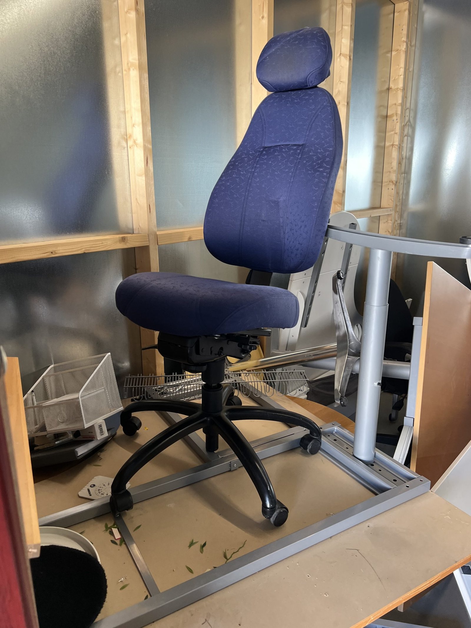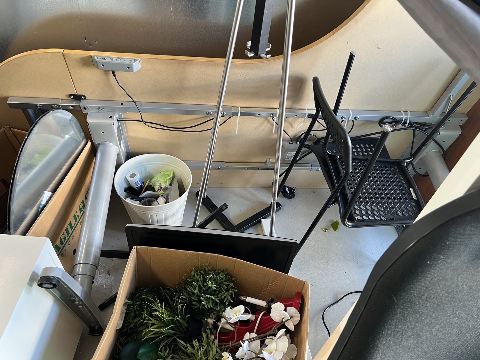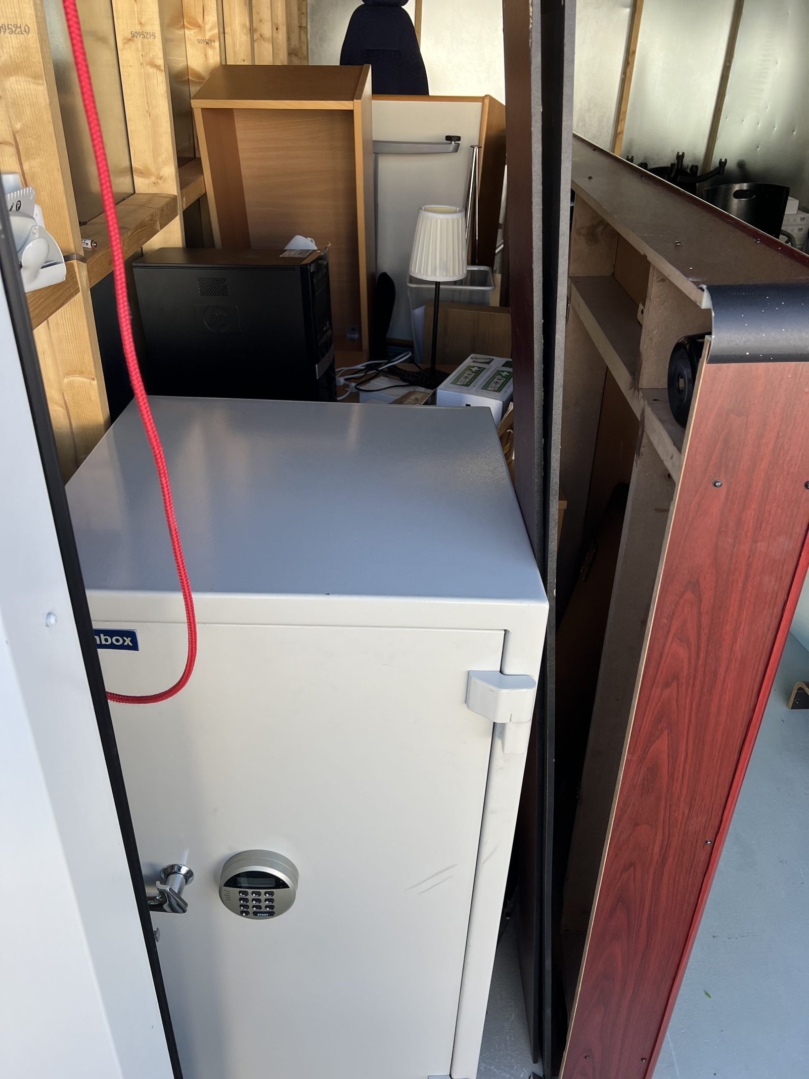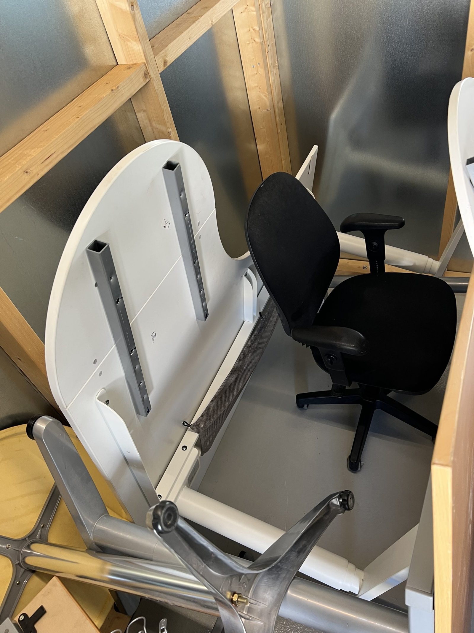 Företag som målat vägmarkering har gått i konkurs. Här finns 2 höj och sänkbara skrivbord samt ytterligare skrivbord och kontorsstolar. Kassaskåpet saknar nyckel och innehållet är okänt. Biljardbord är i sämre skick och det är okänt om det finns bollar det till det. Stort parti med sprayfärg för markering i oöppnade kartonger. Bilbatteri i okänt skick.